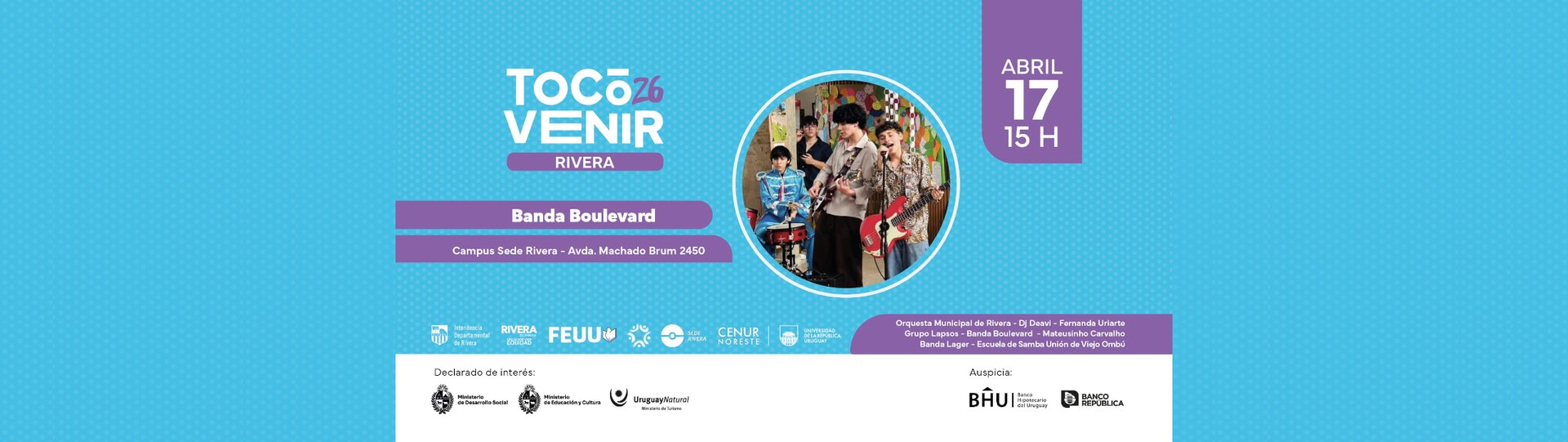 Boulevard se forma en 2025 en Rivera, Uruguay, cuando dos compañeros de liceo descubren de manera casual que comparten gustos musicales. El proyecto comienza como un dúo y, con el tiempo, se completa con la incorporación de nuevos integrantes, dando forma a una banda que explora la música popular rioplatense desde una mirada joven y actual. Con letras en español, cercanas y honestas, y un sonido crudo pero sensible, Boulevard trabaja sobre emociones cotidianas y situaciones reconocibles, buscando canciones que conecten desde lo simple y lo real. Actualmente, la banda combina composiciones propias con versiones del cancionero rioplatense, encontrándose en una etapa de consolidación escénica y proyección regional.
